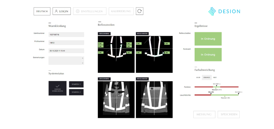 Kleidungsstücke durchlaufen nach Wäsche und Finishing auf einzelnen Bügeln unsere Aufnahmebox, in der Fotos von Vorder- und Rückseite angefertigt werden. Unsere Software analysiert sie in Echtzeit und überträgt das Ergebnis an eine Steuersoftware, welche die Kleidung zu weiteren Stationen im Qualitätskontrollprozess schickt. Die Ergebnisse der Prüfung werden im System gespeichert – eine wertvolle Datensammlung, die dem Kunden zur Verfügung steht, um das System, aber auch interne Abläufe wie z.B. den Waschprozess zu analysieren und zu optimieren.